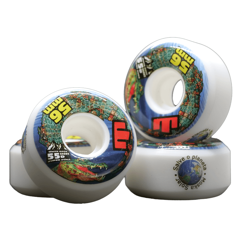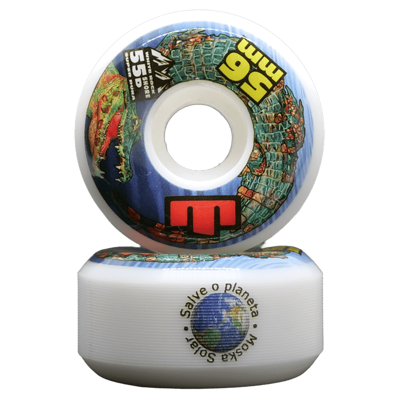 Roda Moska coleção Salve o Planeta, tamanho 56mm, dureza 55D, desenvolvida para a pratica de street e park, com alto desempenho em Skateparks de concreto e madeira e também para superfícies adversas como o asfalto.