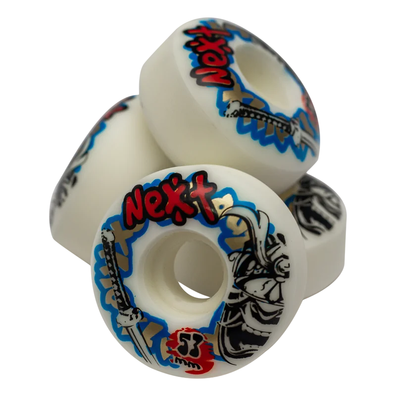 Roda Next, tamanho 53mm, dureza 553D, desenvolvida para a pratica de street park, bom desempenho em vários terrenos e superfícies.